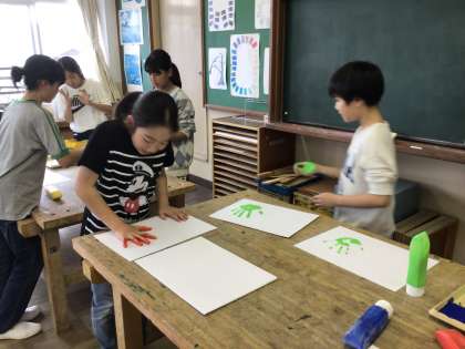いよいよ、計測の時。6年生全員、身長が伸びていました!教室掲示用に取った手形足形からも身体の成長が感じられました。もちろん、心もしっかり成長しています!