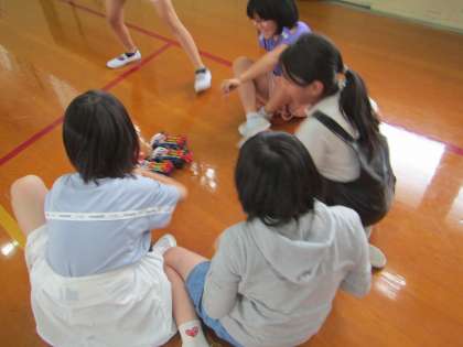 学習の最後に実験で使った車を体育館で走らせました。「こんな走るんや!」と車は思った以上の距離を走ったようで、みんな驚いていました。