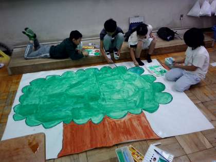 学習発表会に向けて大道具づくりをしました。友だちと話し合いながら、自分たちが使うものを熱心に作成する姿が見られました。これからも本番に向けて協力して取り組んでいきましょう。