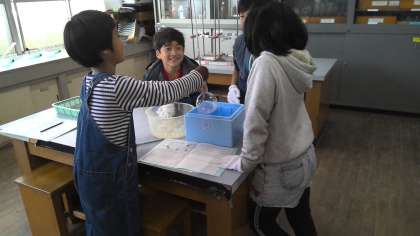 4年生は初めての理科室での実験です。