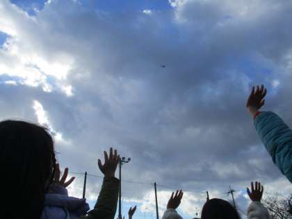 撮影のヘリコプターが近づくと、みんなで思いっきり手を振りました。