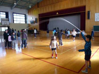 28日、29日の中間休みに、児童会主催で「なわとびタイム」が行われました。体育館で、たて割りグループで大縄跳びを楽しみました。6年生ももうすぐ卒業、こうして全学年がいっしょに遊ぶ機会ももうあとわずかです。