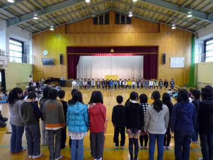 在校生から6年生にむけて,感謝の気持ちのこもったお別れの言葉や音楽の演奏がありました。また,お返しに,6年生から在校生のみんなに贈る言葉と「ジュピター」の合奏がありました。在校生手作りのプレゼントが計画委員から6年生ひとりひとりに渡され,中には少し目頭があつくなった6年生もいました。体育館は,とてもあたたかい空気に包まれました。