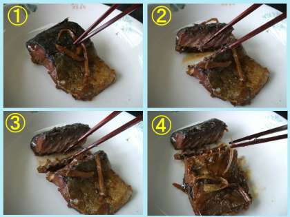 子どもたちは『さばの食べ方』の資料を見ながら,上手に魚を食べていました。