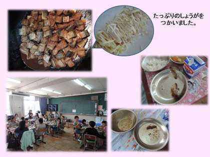 今日は今年度初めての骨つきの鯖が登場しました。給食室で時間をかけてゆっくり煮つけています。しょうがの香りもきいて,ごはんにぴったりの味付けになりました。