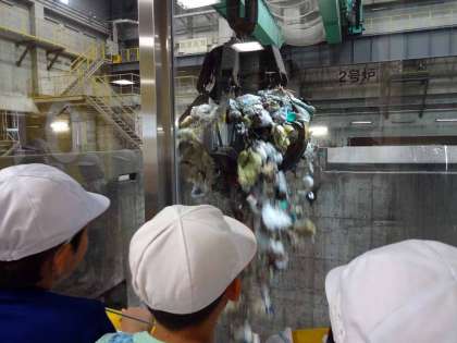 収集車で集められたごみがピットに投入される様子,ごみクレーンでごみを持ち上げてホッパに投入される様子,中央制御室でコントロールされている様子,関係ある数多くの展示物などを見学しながら,最後に3つのキーワード3R「リデュース」「リユース」「リサイクル」を知ることができました。