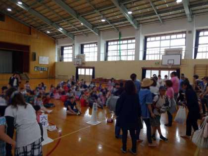 4校時には,PTAの第1回家庭教育学級とも兼ねて,学校長より「学校と家庭の役割」というテーマでお話させていただきました。また,終了後は,引き渡し訓練で体育館に緊急避難し,保護者の方々に迎えてもらいました。ご協力ありがとうございました。