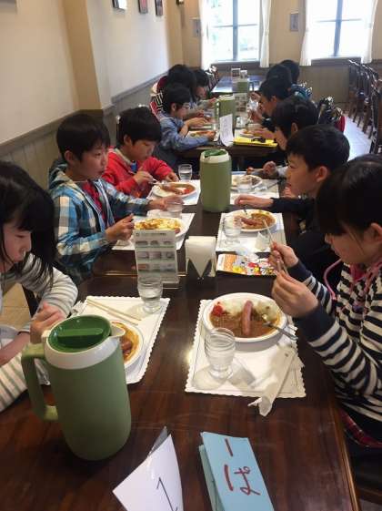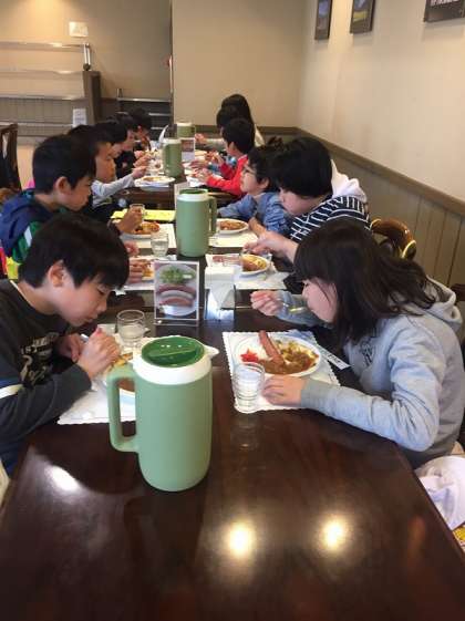 修学旅行最後のお昼ご飯は,カレーライスです。