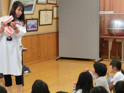 学校では,給食の後に歯磨きをするよう声かけし,子どもたちはそれが習慣になってきていますが,改めて正しい歯の磨き方の大切さを教えていただき,自分たちの日ごろの歯磨きを振り返っているようでした。