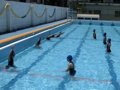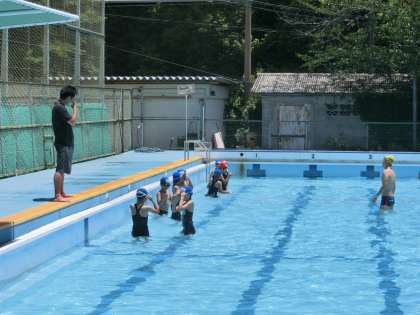水泳学習では,バディーと呼ばれるペアを組んで,お互いの安全を確認しながら学習を進めます。