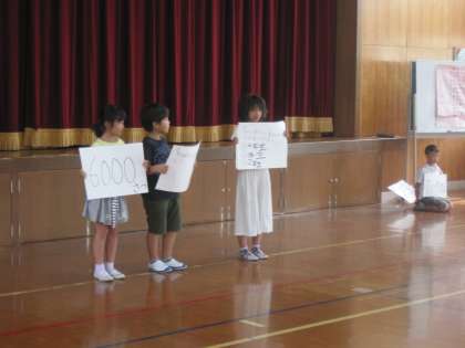 健康委員会からは,プールで学習するときの諸注意を,飼育委員会からは買っているウサギについてのクイズ,広報委員会からは,読書月間に寄せて,本に親しむことについての発表がありました。