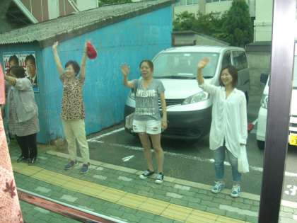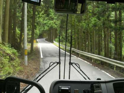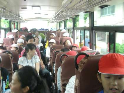保護者や教職員に見送られて、紫野小学校と一緒に出発です。バスの中はとても賑やかです。運転手さんが山道をとても上手に運転してくださり、気分が悪くなる児童もいませんでした。