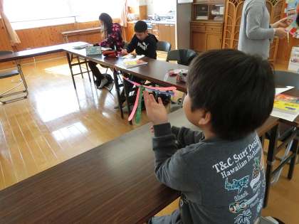 子どもたちは,目を輝かせながら工作を楽しんでいました。
