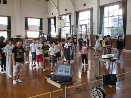 みんなで元気に校歌を歌い,そのあと,校長先生からお話をききました。
