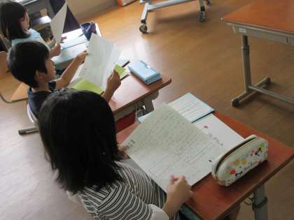 6月12日(火)3校時,2年生国語「お話を読んで感想を書こう スイミー」の様子です。スイミーの作者,レオ レオニの作品を読んで感想をワークシートに書き,発表しあいました。