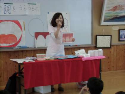 おうちでも、習ったように歯を1本1本丁寧にみがくだけでなく,歯ぐきまで優しく磨くようにお声かけください。