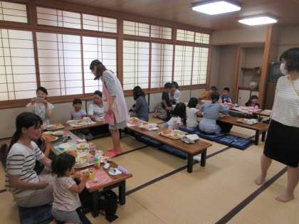 そして,子どもたちと一緒に給食の準備をしていただき,そのあと一緒に食べていただきました。