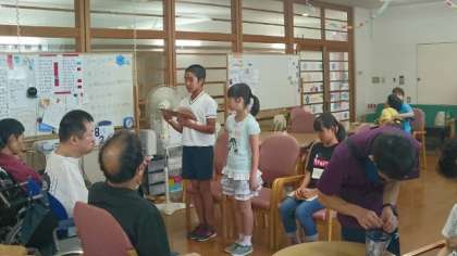 利用者さんや保育所の子ども達にも,笑顔があふれていました。参加した子ども達は,「おじいさん,おばあさんと楽しいひとときが過ごせました。」「障害のある人に自分たちの発表を喜んでもらえました。」「小さな子ども達が笑ってくれて良かったです。」などの感想を言っていました。充実した活動となって良かったです。