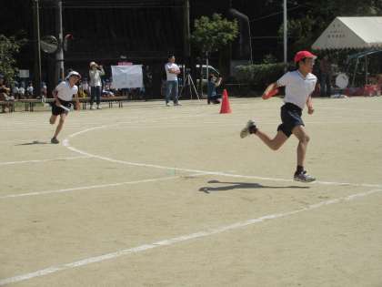 続いて,楽只小学校ならではの児童会種目,全校児童がバトンをつな