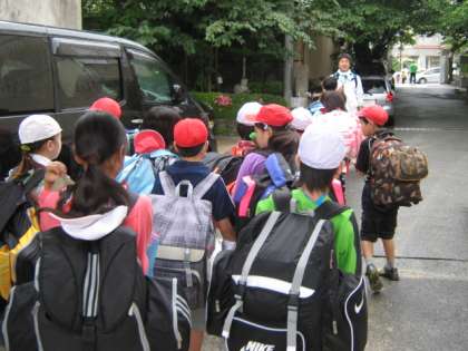 あいにくの雨で講堂での出発式になりましたが,全員そろって元気に出発していきました。帰校予定は6月3日の午後5時くらいです。