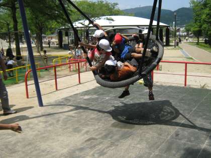 晴天に恵まれた6月6日(月)、1年生・2年生・3年生合同のなかよし遠足が行われました。行き先は、宝ヶ池方面です。法の山を登った後、宝ヶ池公園で遊びました。宝ヶ池公園では、大きなジャングルジムやすべり台、ブランコなどをして遊びました。普段なかなか遊べない遊具に子どもたちは大喜びでした。