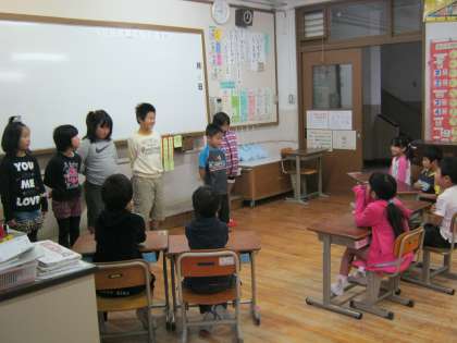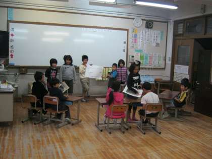 国語科の学習として3年生が,12月16日に行う持久走大会についての意義や約束事などを調べたことや体験したことをもとに,1年生児童にわかるように説明をしました。