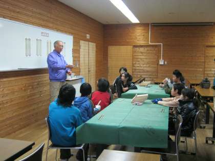 みんなで竹箸作りに挑戦しました。山の家で使うお箸作りにみんなとても真剣な様子で作っています。