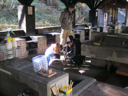 二日目の朝から,みんなで協力しながら火起こし体験に挑戦しました。