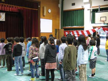 本日,平成23年度の修了式を行いました。6年生が昨日,卒業したので,6年生のいない修了式は少しさみしく思いましたが,1〜5年生は素晴らしい態度で修了式に臨んでくれました。修了証は児童代表の5年生が受け取りました。一学年進級することにうれしさを感じているようでした。
