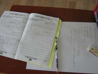 4年生は昨日までのみさきの家での思い出を作文に書きます。しおりを見ながら活動を思い出し,構成メモを書きました。キャンプファイヤー,野外炊事,釣りなど楽しかったことがたくさんあったので文章もすらすら書けます。出来上がりが楽しみです。