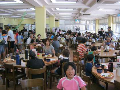 よく動いた後の子どもたちの食欲には驚きます。最後の昼食を食べました。しっかり順番を守り,おいしくいただきました。