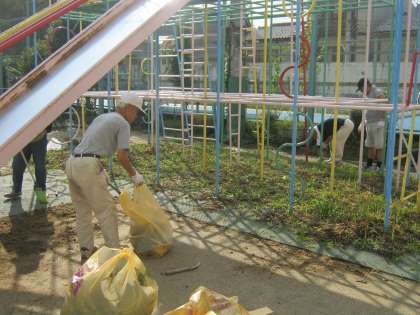運動場の草抜きをしていただきました