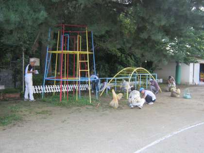 本日,楽只老人会の皆さまにより,運動場の草抜きをしていただきました。夏の間に伸びていた草がきれいになりました。ありがとうございました。