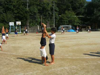 高学年のみんなが気合を入れて取り組んでいます。助け合い,支え合って練習しています。