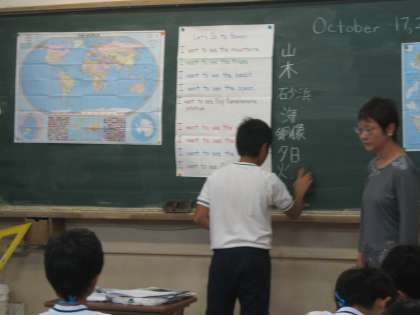 昨日に引き続き,本日もスーン先生が楽只校にご来校いただき,5・6年生の子どもたちにハワイの様子や英語を教えていただきました。ハワイの様子を話されるスーン先生の目をしっかり見て聞いたり,積極的に考え表現したりする姿がとても印象に残りました。楽しい英語の勉強になりました。スーン先生,ありがとうございました。