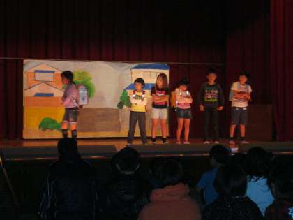 3年生は「ふしぎなめがね」を演じました。みんな声をしっかり出して,わかりやすい表現でとてもよかったです。相手のことをしっかり考えることの大切さを訴えていました。