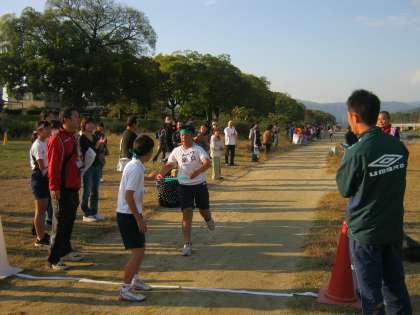昨日,加茂川の河川敷(北大路〜出雲路橋の周回コース)において,北下支部駅伝交歓会がありました。楽只校の6年生が一本のタスキをつないで力の限り走りました。毎朝,楽只校の運動場で走ったり,部活動で頑張っている力を存分に発揮してくれました。