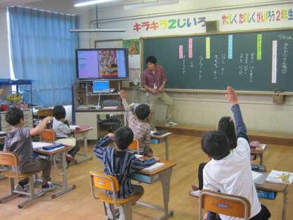 本日(2校時),2年生は国語の学習でカタカナで書く語の種類を,自分たちの身の回りにあるカタカナを考えだし合っていました。