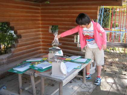 ビニル袋に1キロの砂を入れて自分で測定し,自分の1キロの重さの感覚を豊かにしていこうと学習しました。確かめながら砂を入れ,重さを量り,1キロの重さを感じ取っていました。