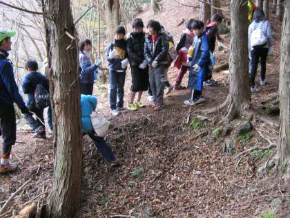 鹿の骨も見つかりました。また,昔に使われていた鹿の落とし穴も見つかり,子ども達は興味深く,説明を聞いていました。