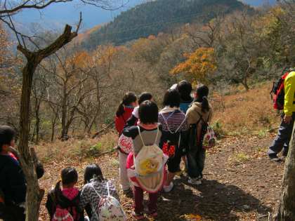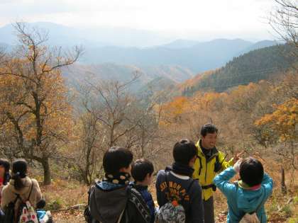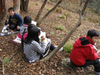 天狗杉ではとても鮮やかな紅葉が見られ,さらに京都市内や船岡山まで双眼鏡で覗き込みました。そして,みんなでおにぎりを食べました。