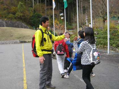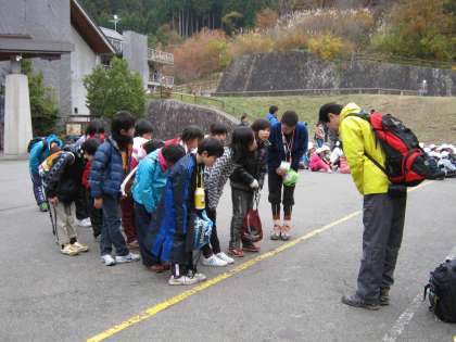 疲れた表情も見せずに山の家まで帰ってきました。お疲れ様でした。お世話になった山の家のスタッフの先生にみんなで御礼をいいました。ありがとうございました。とてもいい自然の中のハイキングができました。