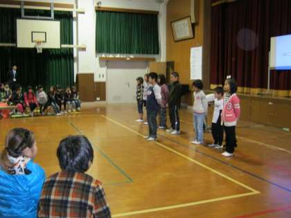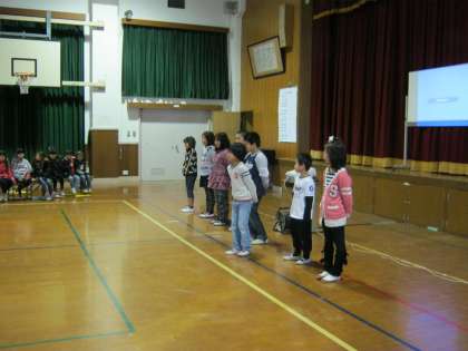 続いて,4年生が「仲良くなろう!! 友情は 話をして 深めてく」についてこれまでの取り組みを振り返りながらアピールしました。3・4年生のアピールを聞いた全校児童が自分の考えや感想を素直に意見交換しました。
