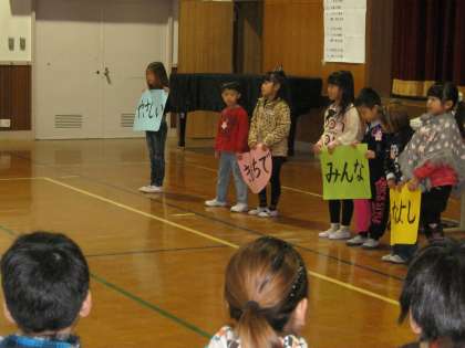 1年生ははじめての「ときめき発表会」でしたが,「やさしいきもちで みんな なかよし」をテーマに交流したことを思い出しながらしっかりアピールしていました。