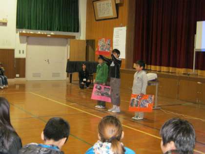 ろ組は「伝わる想い つなげる心 笑顔ひろがり つながる仲間 みんなと出会い 出た勇気」について,自分たちが経験したこと,交流したことをみんなに伝わるようにアピールしました。