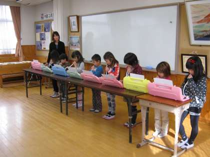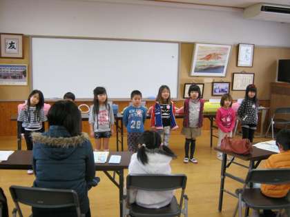 写真は現在の1年生による挨拶や鍵盤ハーモニカによる演奏時の写真です。