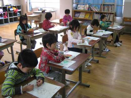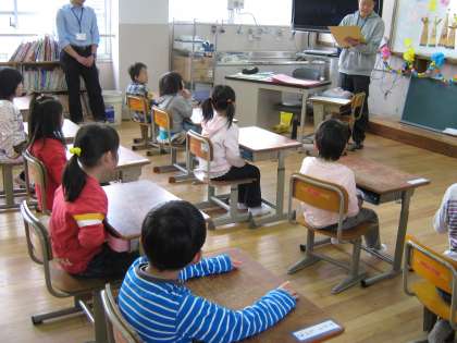 入学式から3日たち,1年生も少しずつ学校に慣れてきました。一つ一つが初めての体験で先生の話をしっかり聞いてがんばっています。運動場で楽しく「どんじゃんけん」もしました。