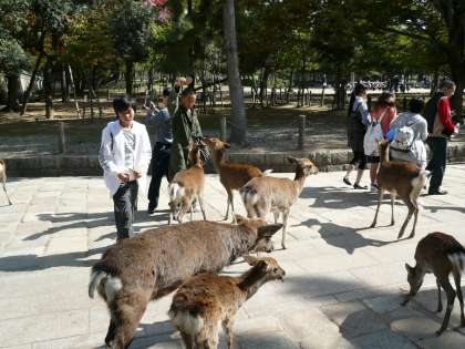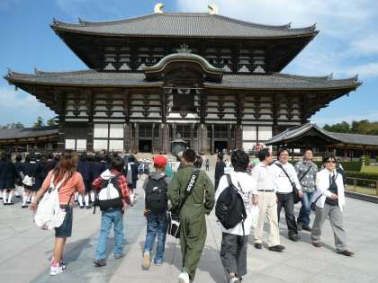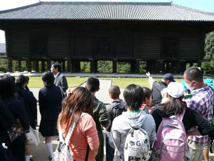 秋晴れの中,6年生が秋の遠足で奈良県東大寺方面に行ってきました。社会科の歴史で学習した東大寺の大仏を拝観し,子どもたちは「想像していたよりも大きい。」「完成までにものすごい仕事だったんだろうな。」と驚いていました。また,たくさんの鹿と共存する奈良市内のまちの様子を見て「奈良の人たちは鹿に優しいんだな。」と感想をもらしていました。とても有意義な社会見学を兼ねた遠足になったと思います。