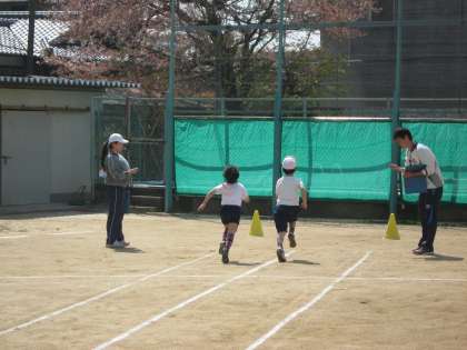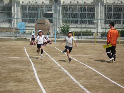 中学年の児童が体育の時間に50m走のタイムを計りました。どの子も最後まで全力で走り切ってがんばりました。前よりもタイムが上がって喜んでいる子もいました。