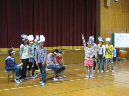 6年生からはキャラクターに扮してあいさつや仲良く遊ぶことの大切さを教えてもらいました。